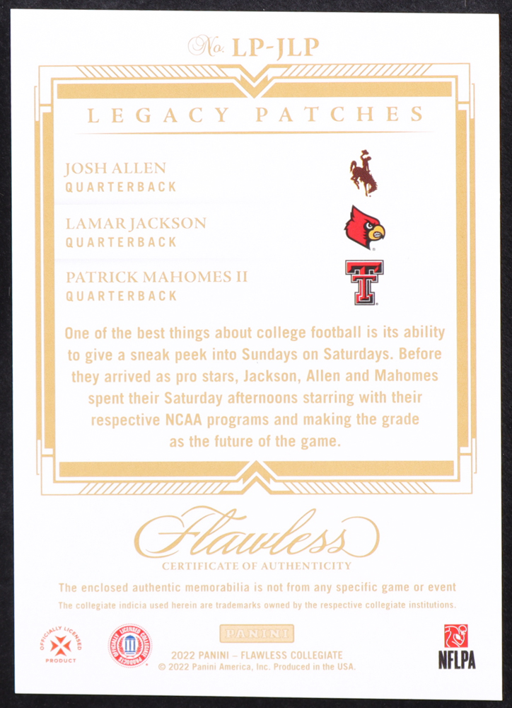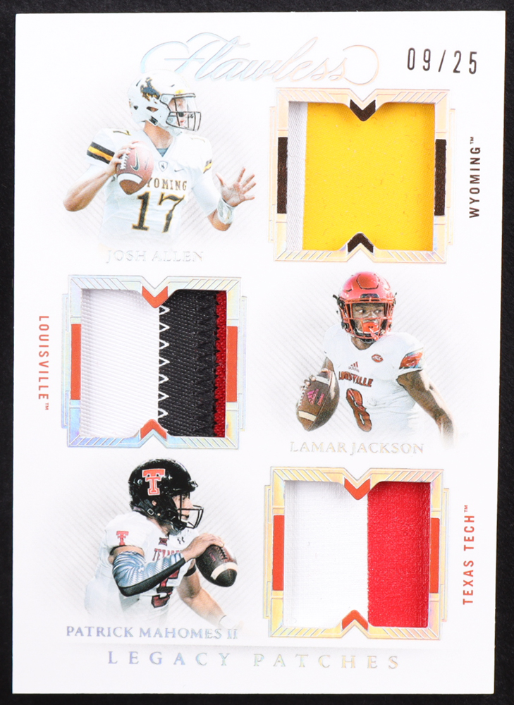 Lamar Jackson / Patrick Mahomes II / Josh Allen 2022 Panini Flawless Collegiate Legacy Patches #11 #9/25