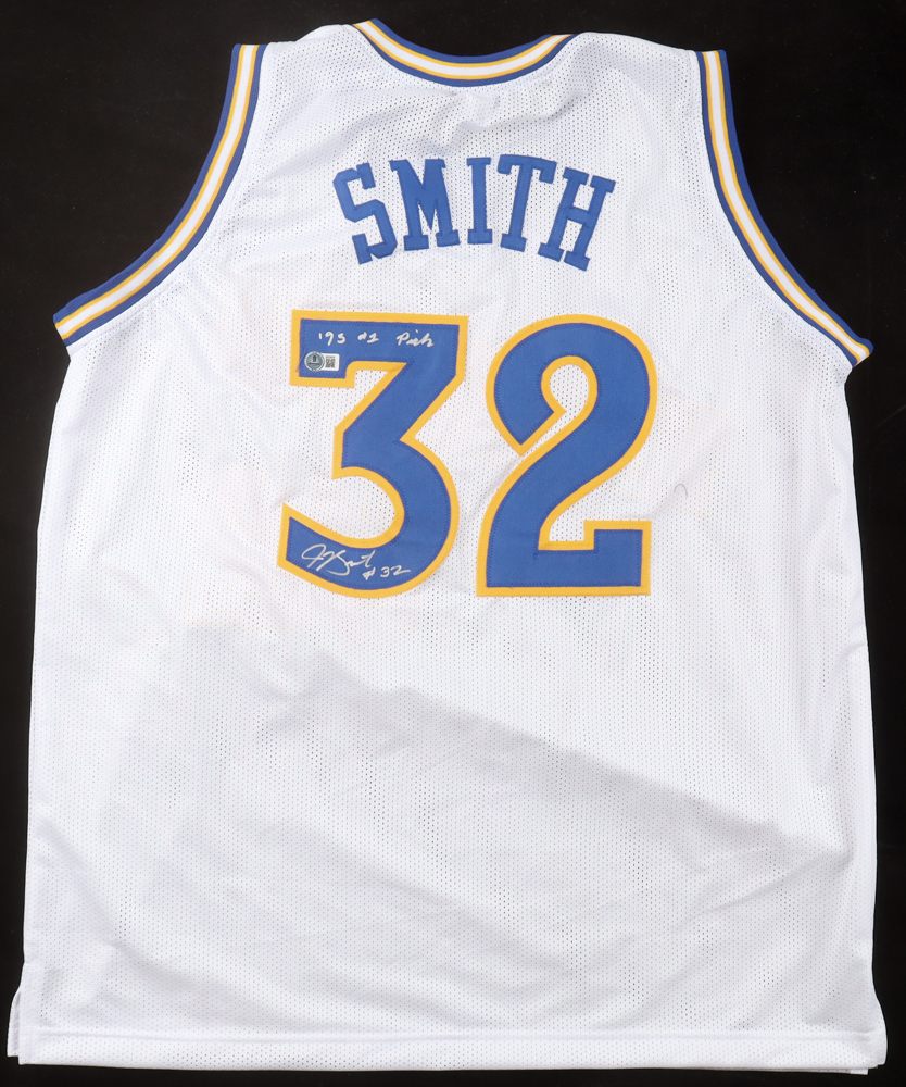 Custom jersey with everything sewn on, size XL. Hand-signed and inscribed by Joe Smith.