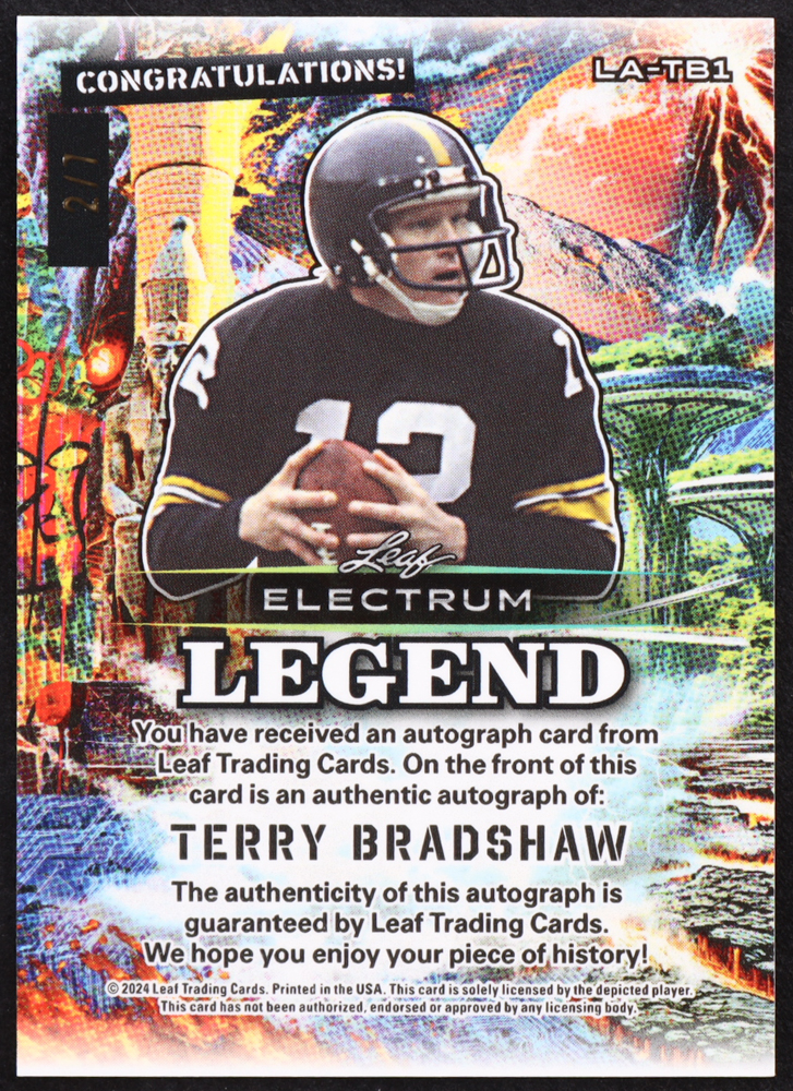 Terry Bradshaw 2024 Leaf Electrum Legend Autographs Purple #LATB1 RC #2/7