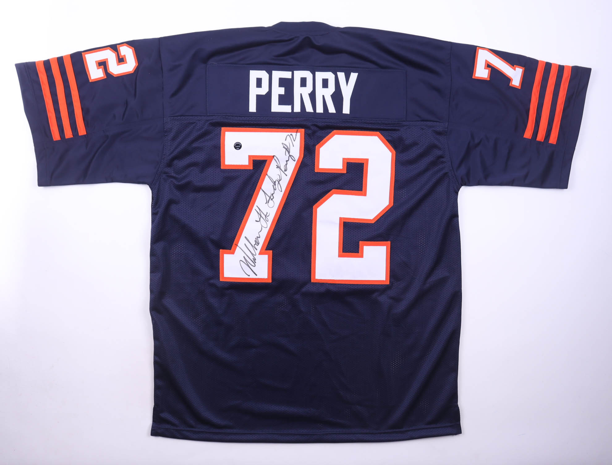 Custom jersey with everything sewn on, size XL. Hand-signed by William Perry.