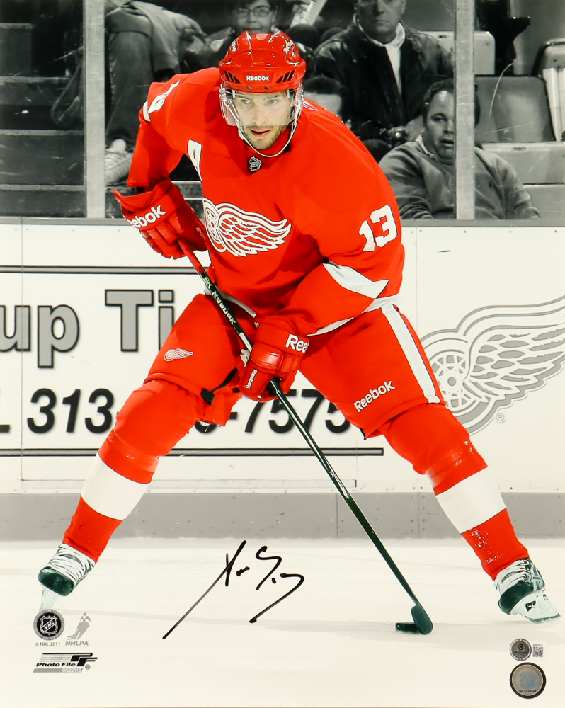 Photo measures 16" x 20" in size and has been hand-signed by Pavel Datsyuk (Detroit Red Wings, HOF).