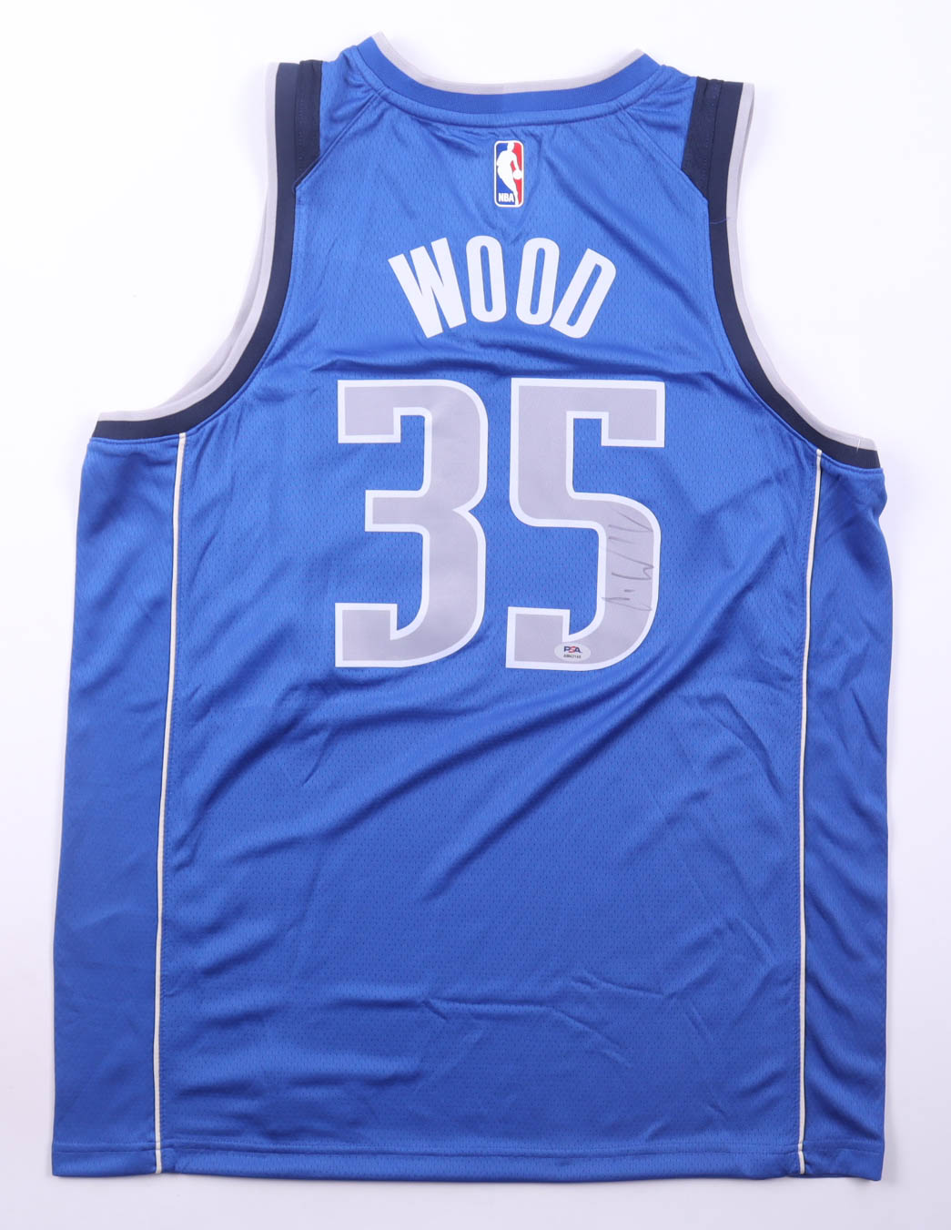 Nike jersey. Everything is pressed on, size 52. Has been hand-signed by Christian Wood.