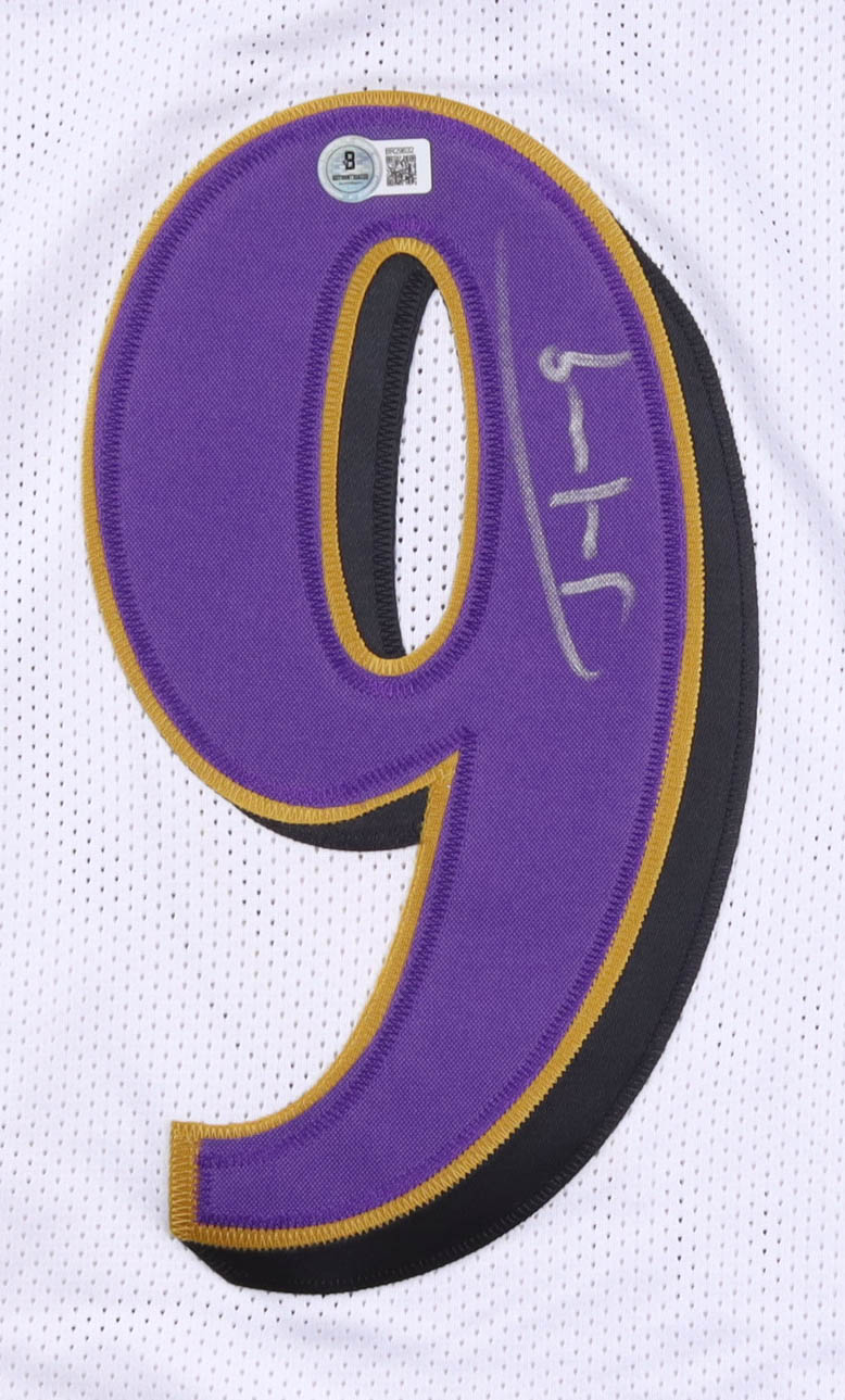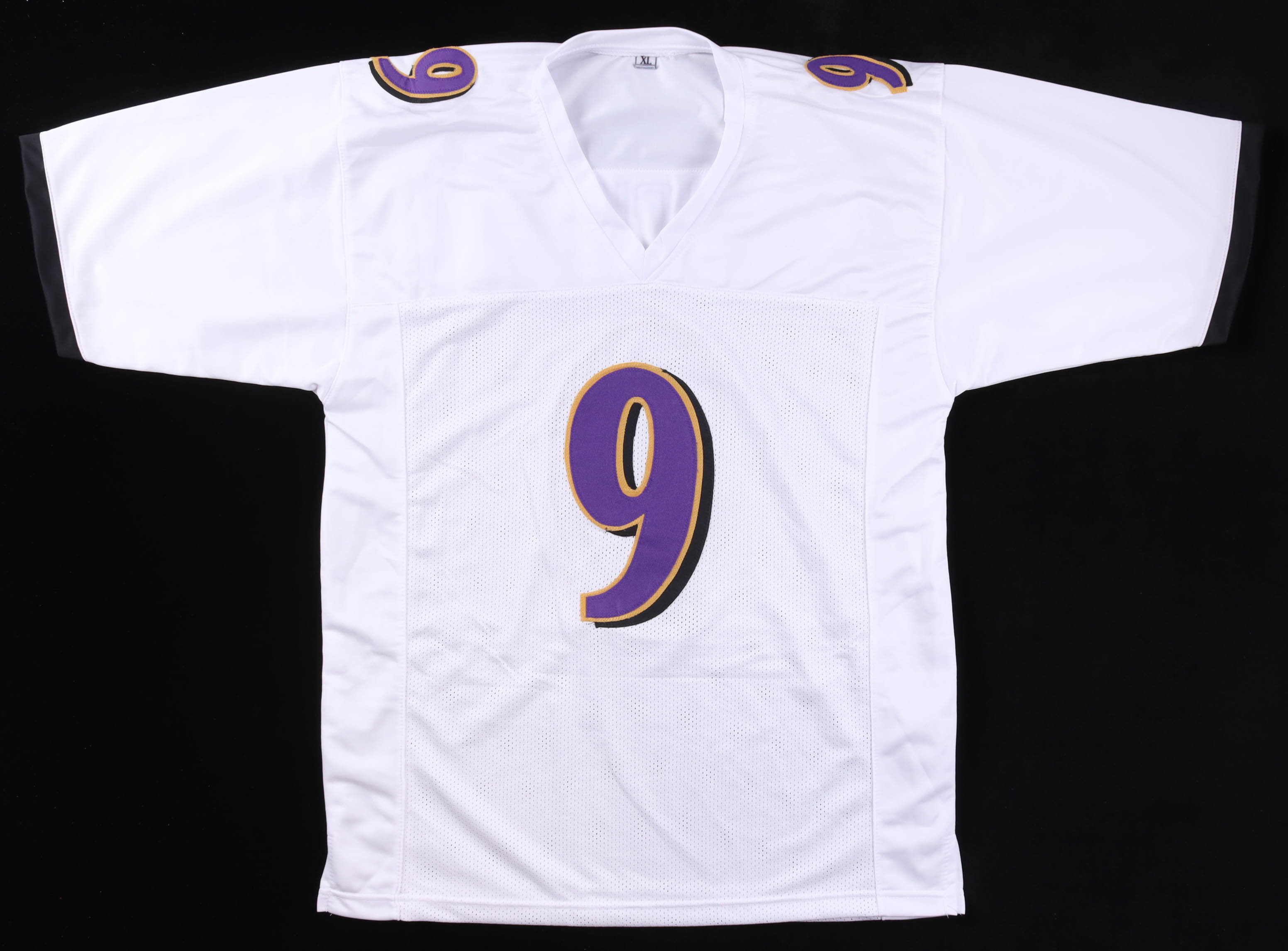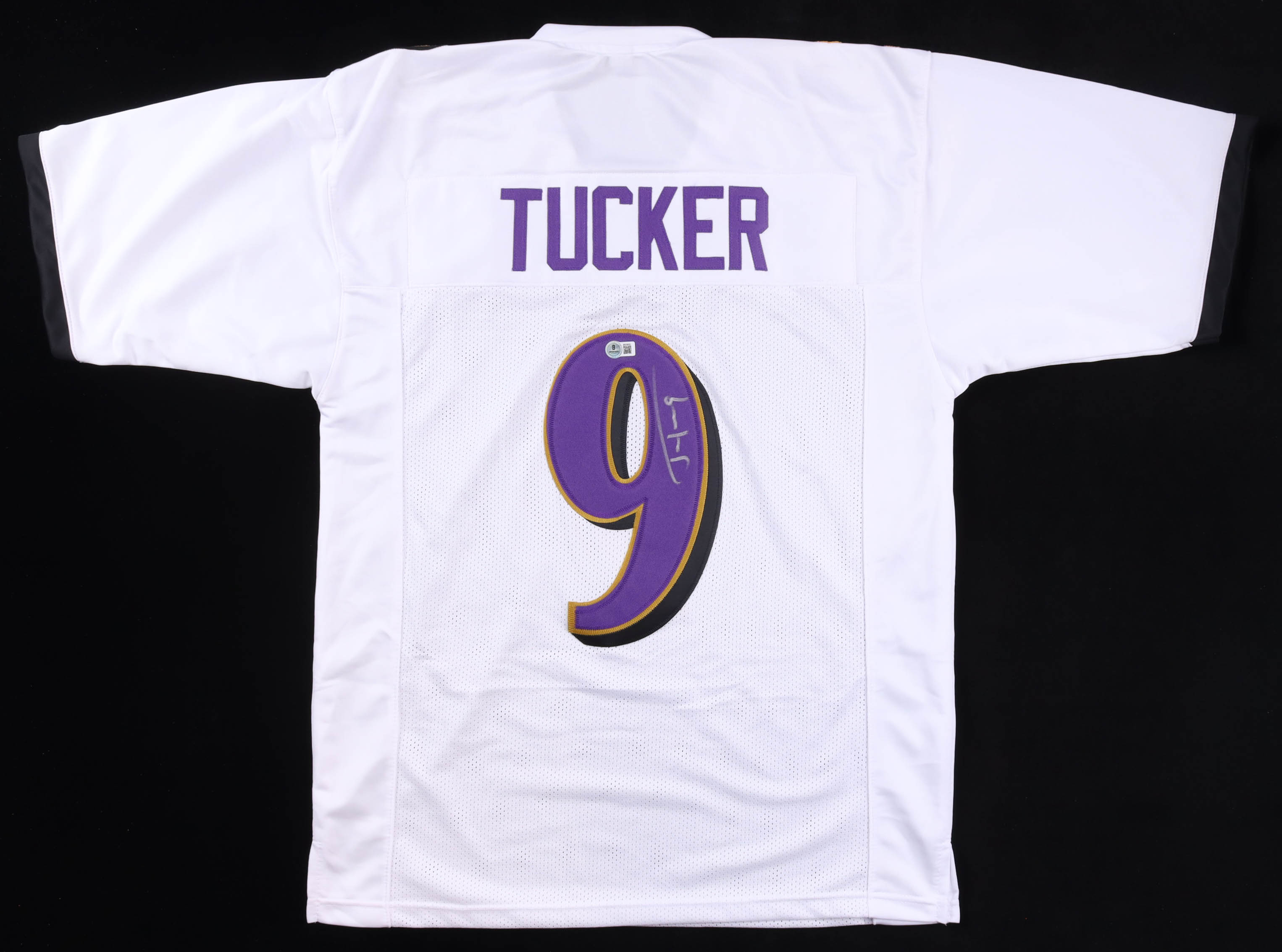 Custom jersey with everything sewn on, size XL. Hand-signed by Justin Tucker.