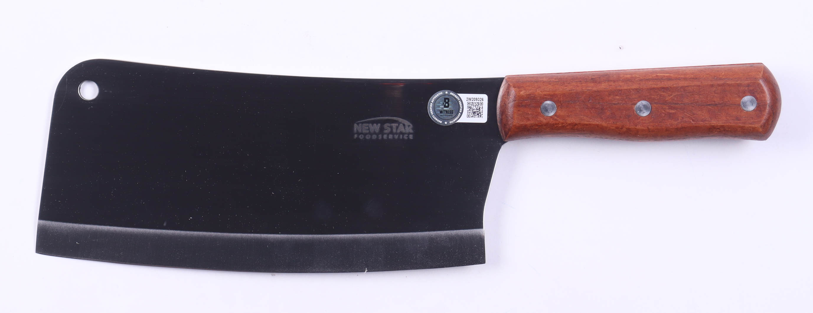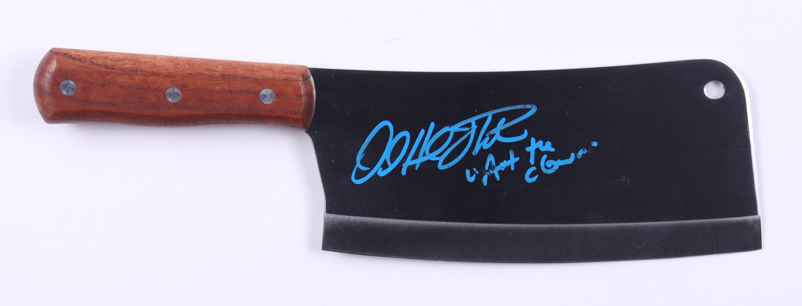 Steel Butcher knife. Hand-signed and inscribed by David Howard Thornton (Art The Clown). Please note the inscription is smudged, and the butcher knife is dull.