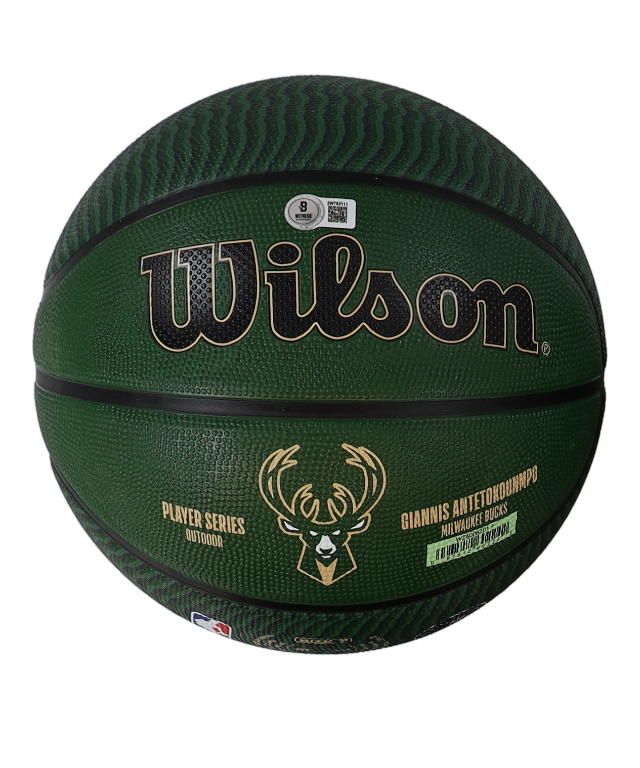 Wilson NBA Milwaukee Bucks Logo Giannis Antetokounmpo player series basketball. Hand-signed by Giannis Antetokounmpo.