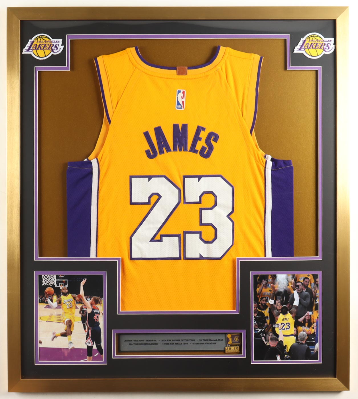LeBron James Custom Framed Jersey Display With 2020 Championship Pin & (2) Cloth Team Logo Patches