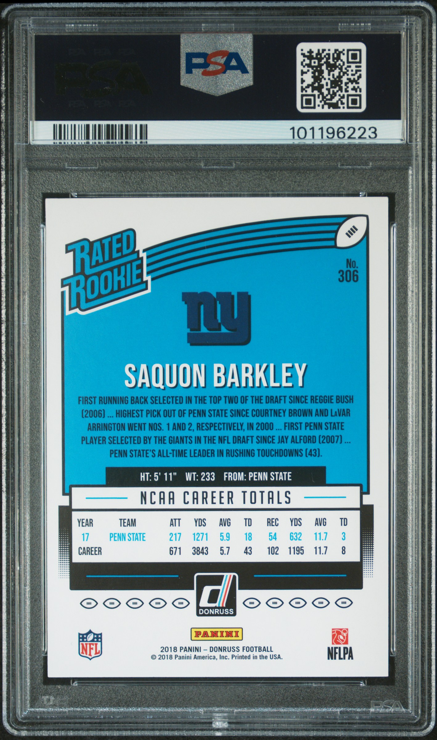 Saquon Barkley 2018 Donruss #306 RR RC (PSA 10)