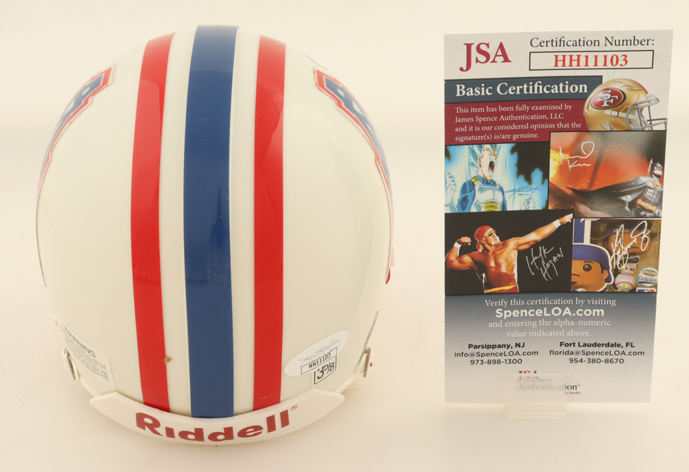 Riddell Houston Oilers Mini Helmet. Hand-signed and inscribed by Elvin Bethea (HOF).