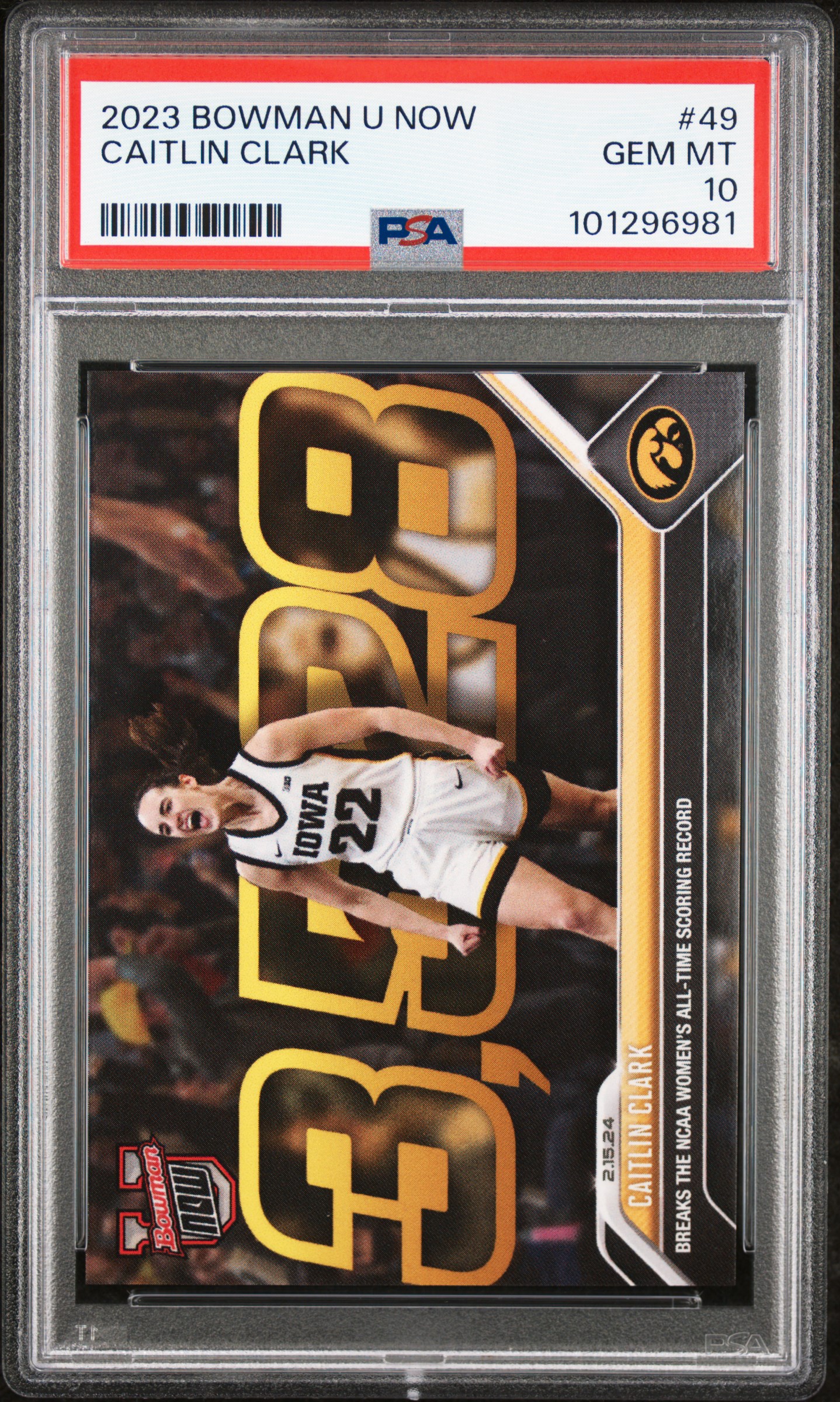 Caitlin Clark 2023-24 Bowman University Now #49 RC (PSA 10)