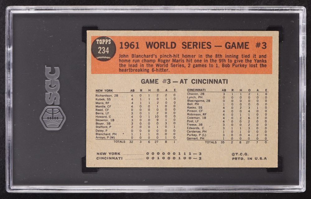 Roger Maris 1962 Topps #234 World Series Game 3 (SGC 5)