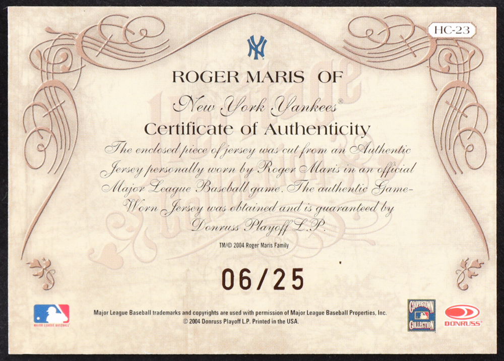Roger Maris 2004 Diamond Kings Heritage Collection Jerseys #HC23 #06/25