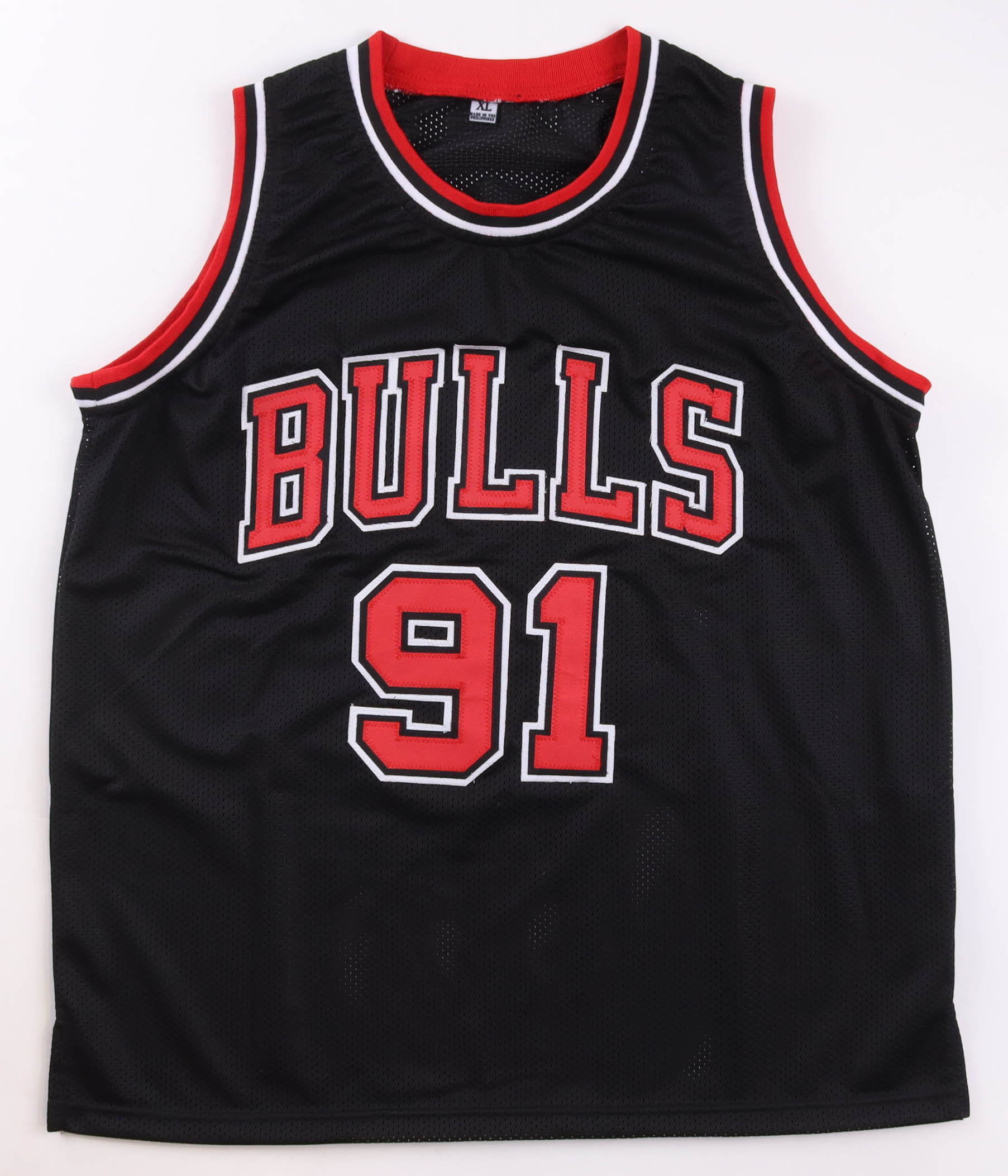 Custom jersey. Everything is sewn on, size XL. Hand-signed by Dennis Rodman (HOF).