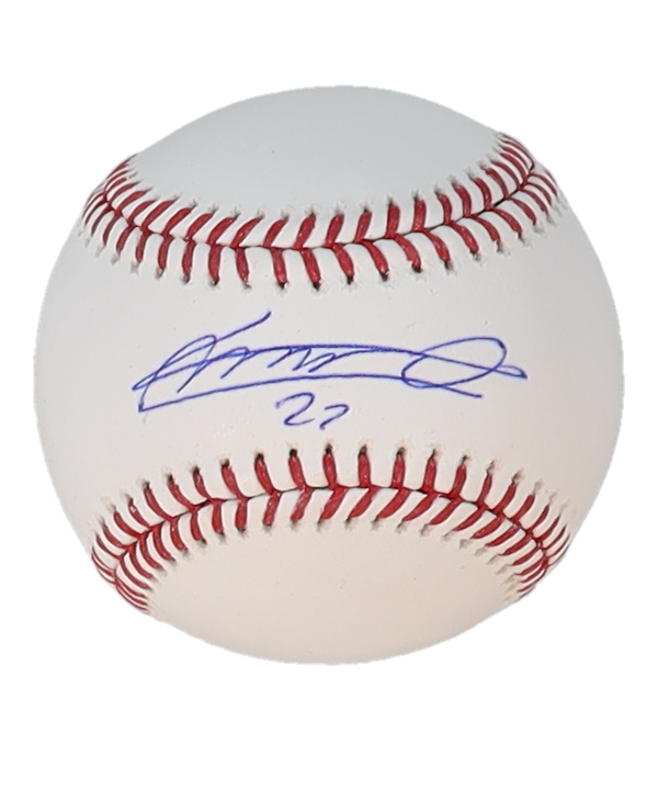 Rawlings Official 2021 All-Star Game Baseball. Hand-signed by Vladimir Guerrero Jr. (Toronto Blue Jays). Please note, there are minor stains throughout the baseball.