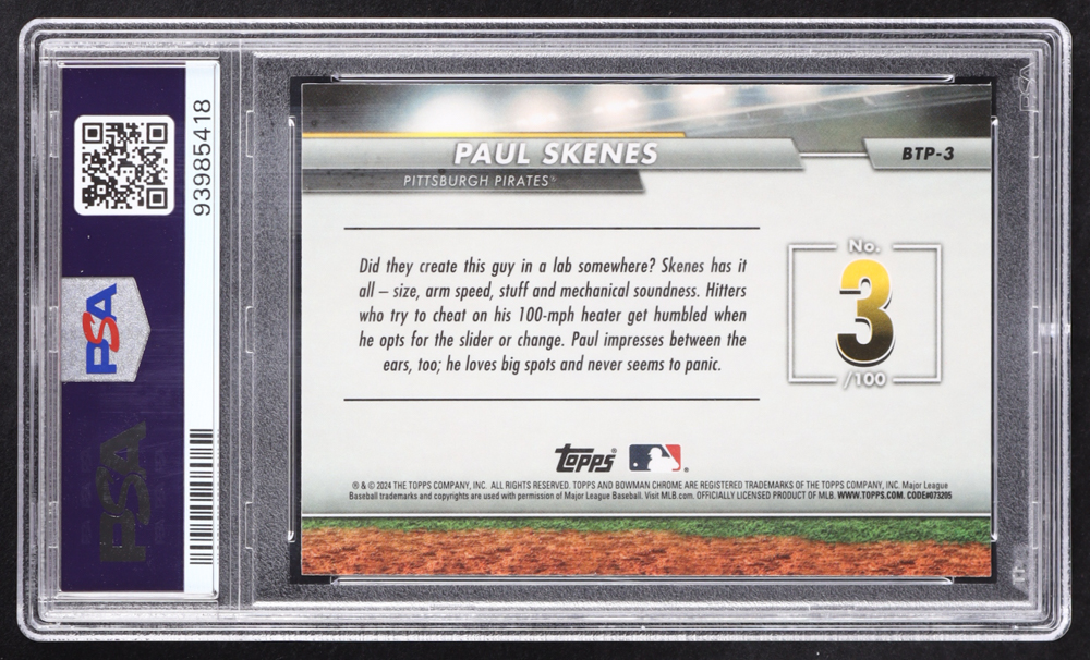 Paul Skenes 2024 Bowman Chrome Scouts Top 100 #BTP3 RC (PSA 10)