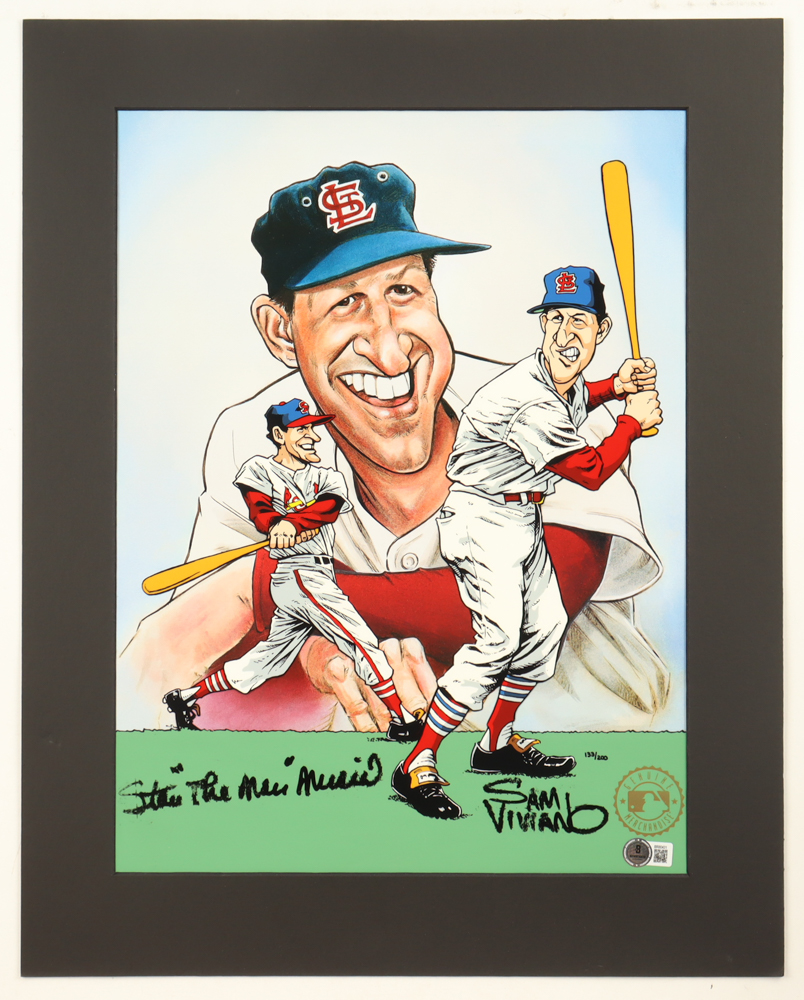 Stan "The Man" Musial Signed LE Custom Matted Hand-Painted Cel Display By Sam Viviano (Beckett)