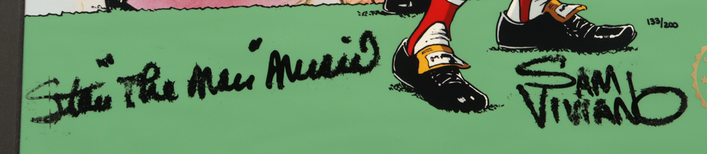 Matted display measures approximately 16" x 20" in size and has been hand-signed by Stan Musial (D 2013, Cardinals, HOF) and artist Sam Viviano. Cel is Limited edition and hand-numbered #133/200.