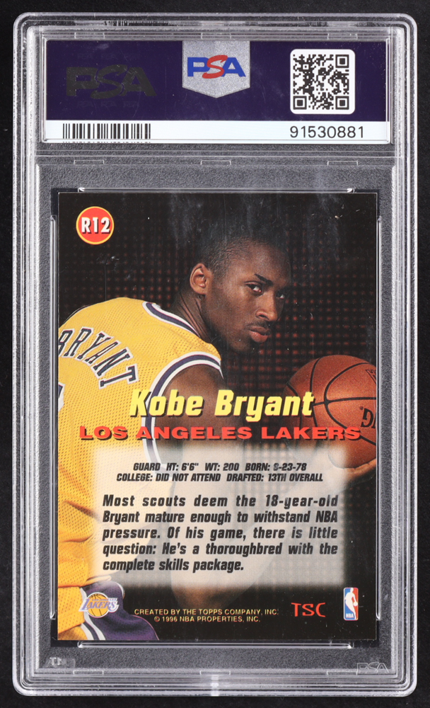Kobe Bryant 1996-97 Stadium Club Rookies 1 #R12 RC (PSA 9)