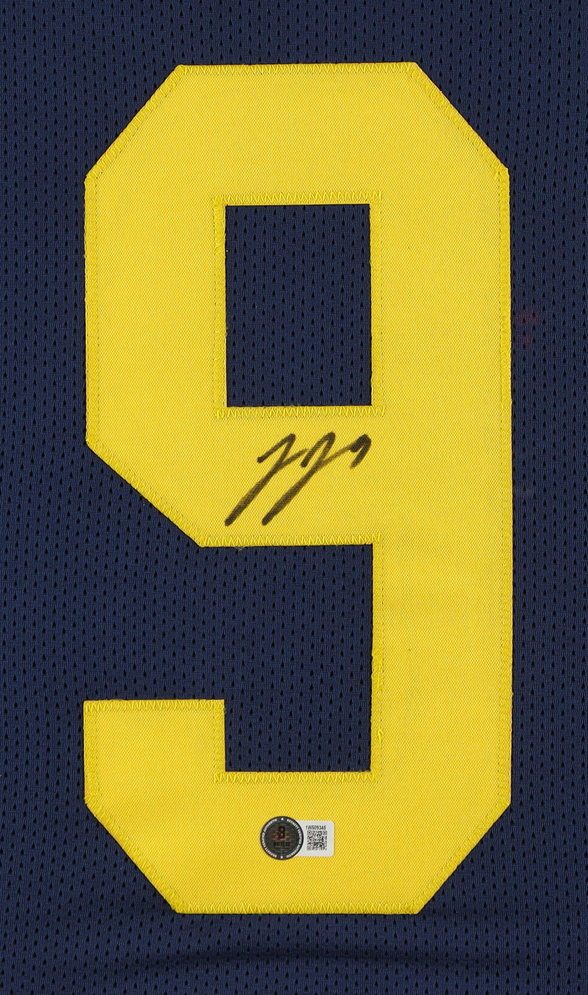 Custom frame measures 35.5" x 43.5" in size and features a jersey that has been hand-signed by J.J. McCarthy.