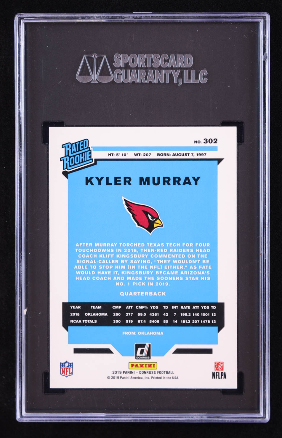 Kyler Murray 2019 Donruss #302 RR RC (SGC 9.5)