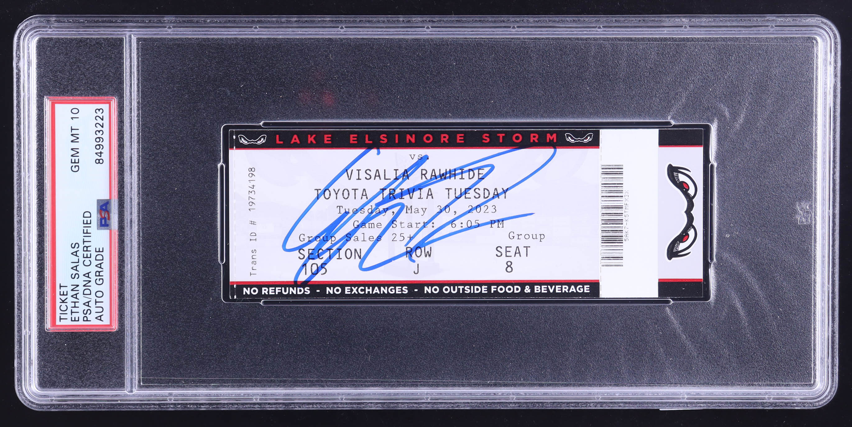 Ticket stub is dated May 30th, 2023. Hand-signed by Ethan Salas (Lake Elsinore Storm). Please see photos for more details regarding the condition of the item.