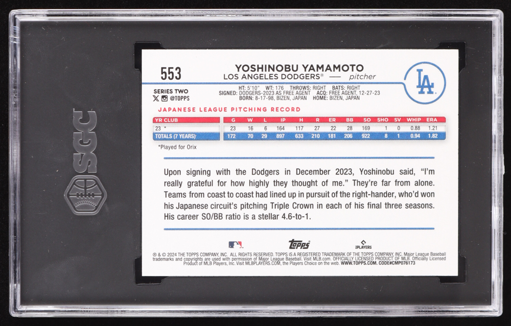 Yoshinobu Yamamoto 2024 Topps #553 RC (SGC 10)