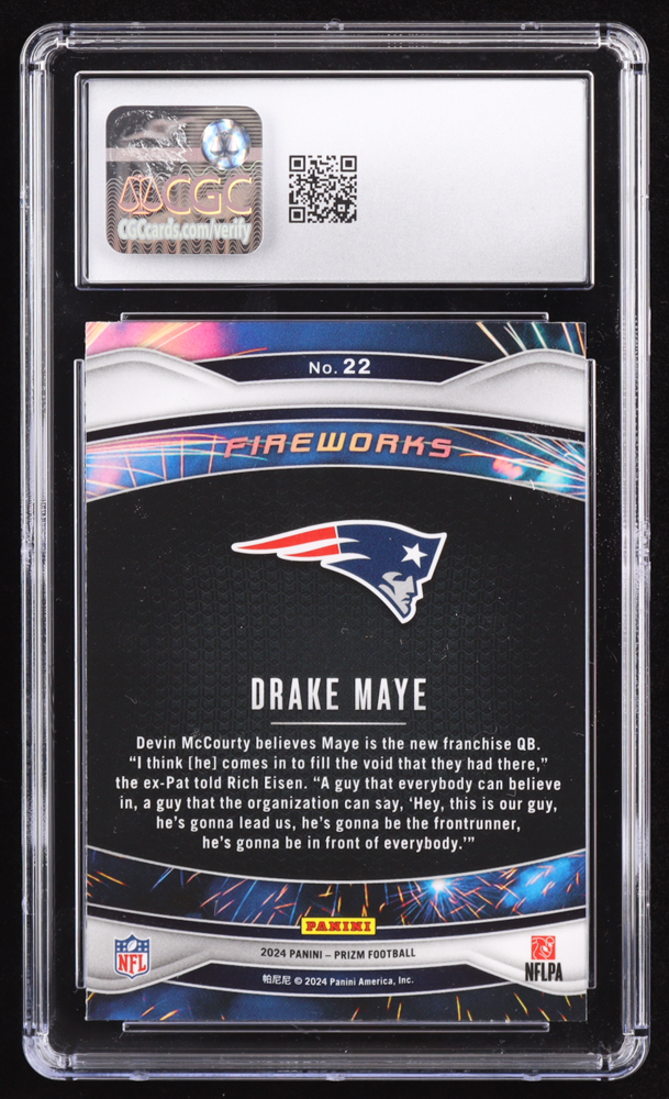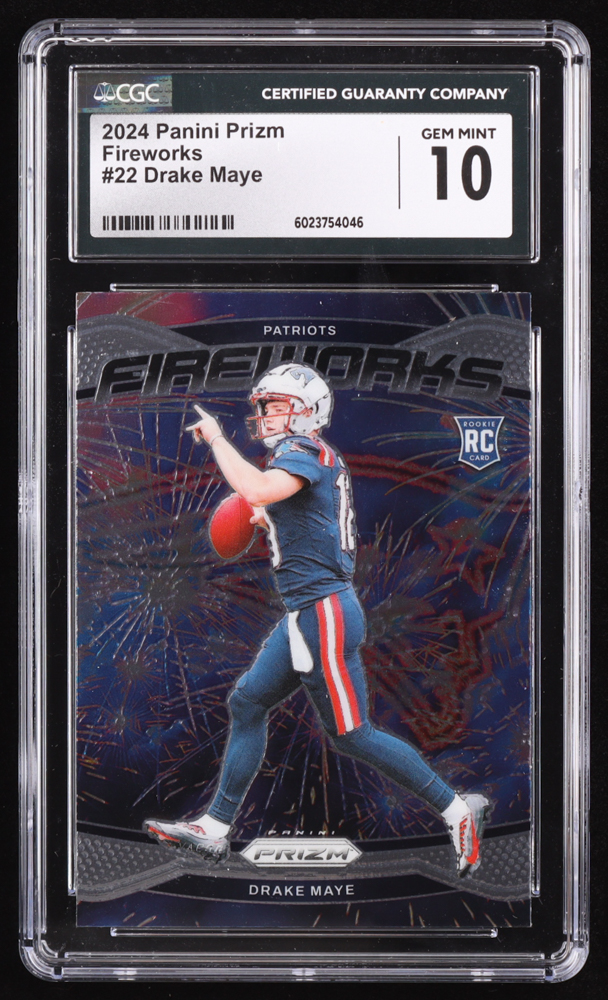 Drake Maye 2024 Panini Prizm Fireworks #22 RC (CGC 10)