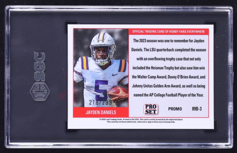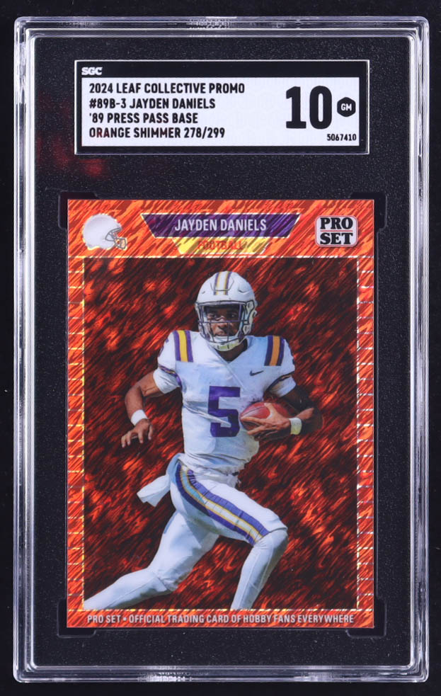 Jayden Daniels 2024 Leaf '89 Pro Set Base Collective Promo Orange Shimmer #89B3 RC #278/299 (SGC 10)