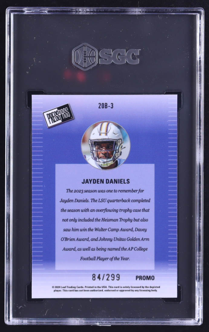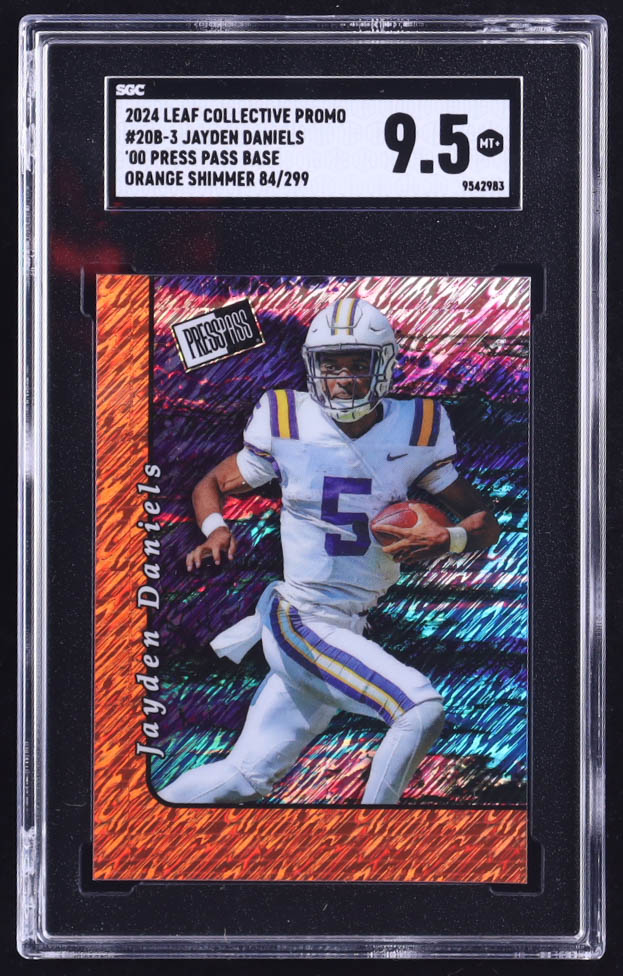 Jayden Daniels 2024 Leaf '00 Press Pass Base Collective Promo Orange Shimmer #20B3 RC #84/299 (SGC 9.5)