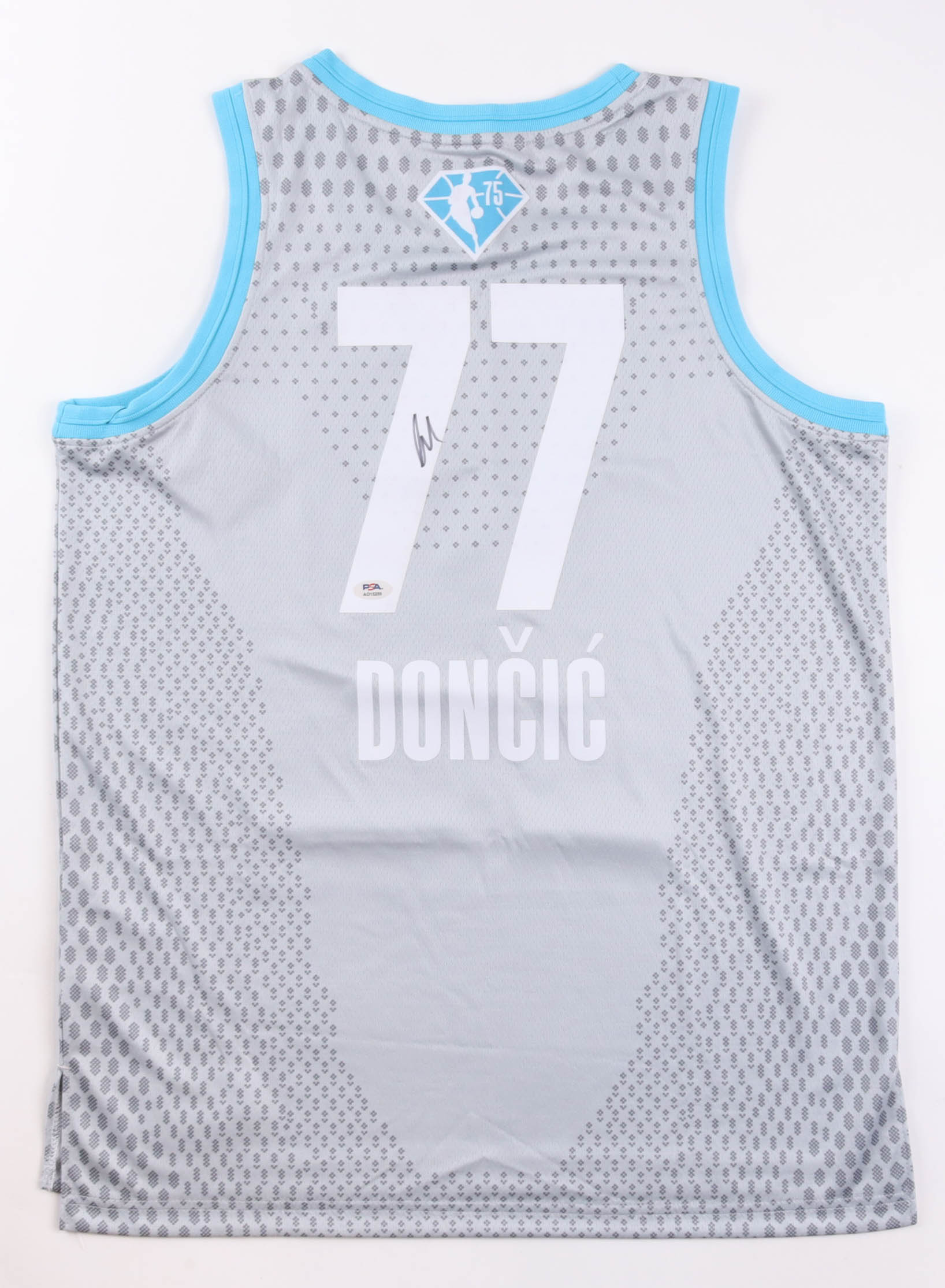 Jordan jersey with everything pressed on, size 50. Hand-signed by Luka Doncic.