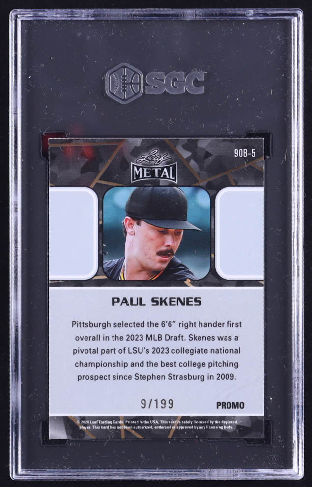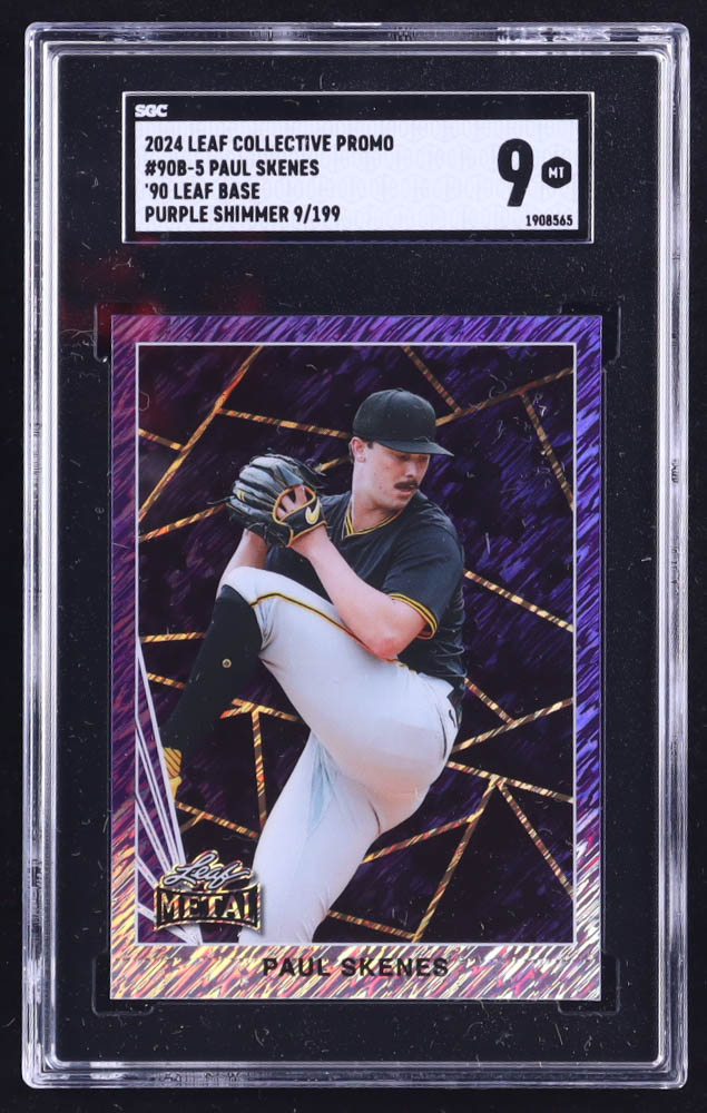 Paul Skenes 2024 Leaf '90 Leaf Base Collective Promo Purple Shimmer #90B5 RC #9/199 (SGC 9)