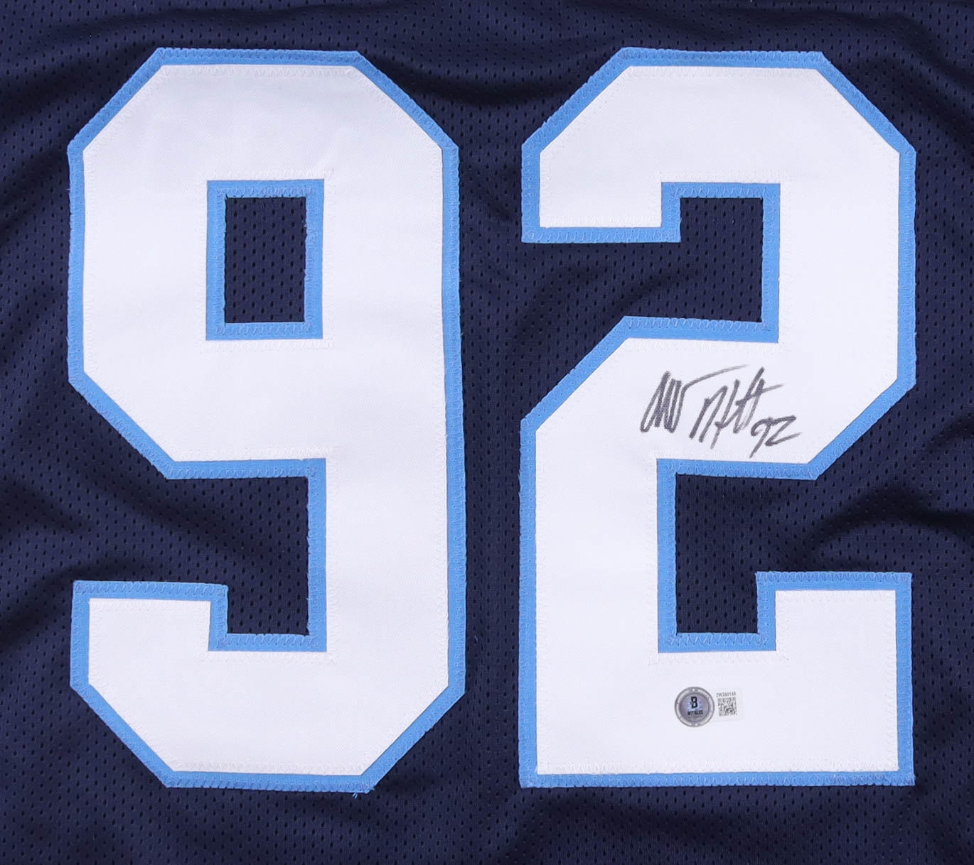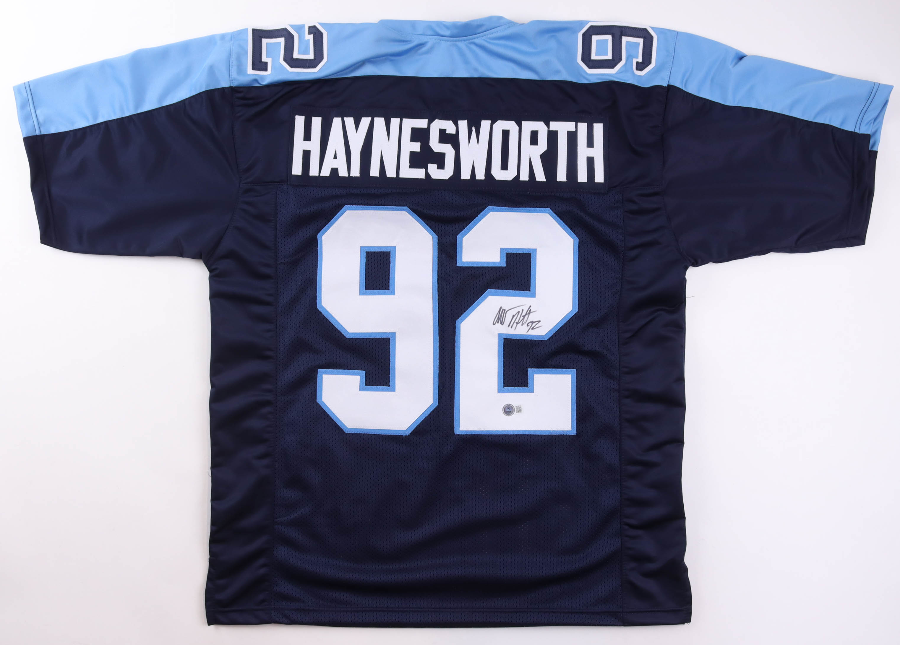 Custom jersey with everything sewn on, size XL. Hand-signed by Albert Haynesworth.