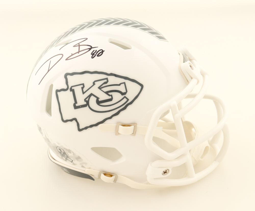 Riddell Kansas City Chiefs Salute To Service Alternate Speed mini helmet has been hand-signed by Dwayne Bowe.