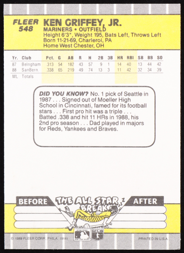 Ken Griffey Jr. 1989 Fleer #548 RC
