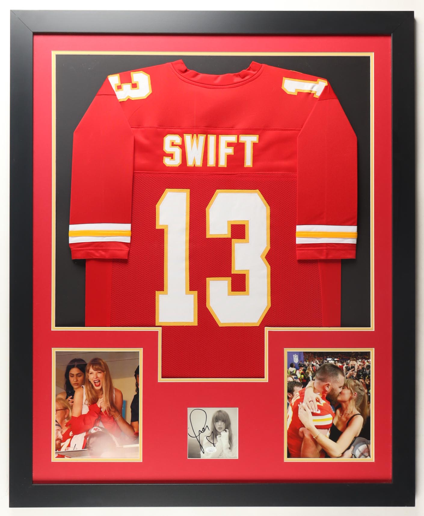 Custom frame measures approximately 35.5" x 43.5" in size. Features a "The Torture Poets Department" CD insert that has been hand-signed by Taylor Swift. The display also includes a custom jersey.