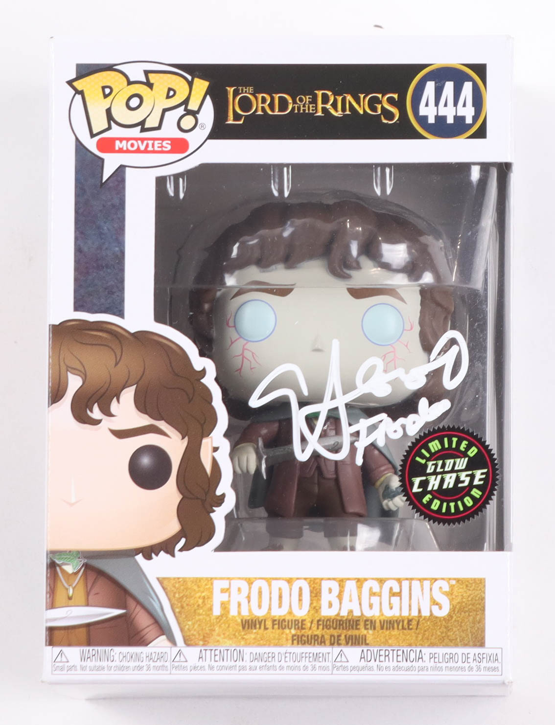 Vinyl figure measures approximately 4" tall. Hand-signed on the packaging by Elijah Wood.