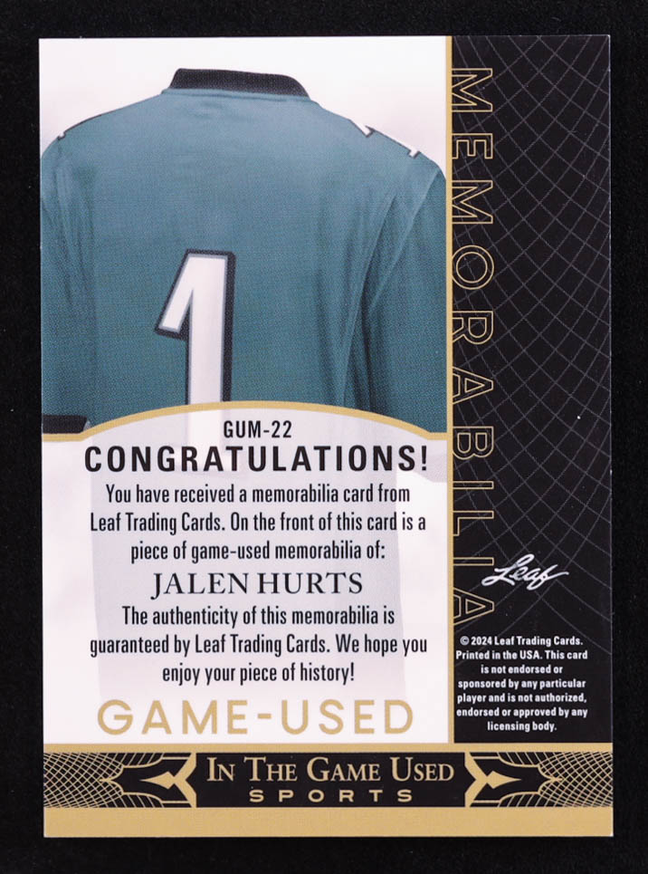 Jalen Hurts 2024 ITG Used Sports Game-Used Memorabilia Crystal Oil Spill #GUM22 #54/60