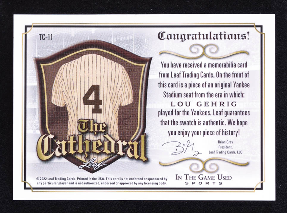 Lou Gehrig 2022 ITG Used Sports The Cathedral Silver Sparkle #TC11 #7/25