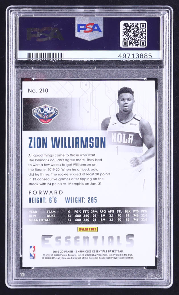 Zion Williamson 2019-20 Panini Chronicles Pink #210 RC / Essentials (PSA 10)