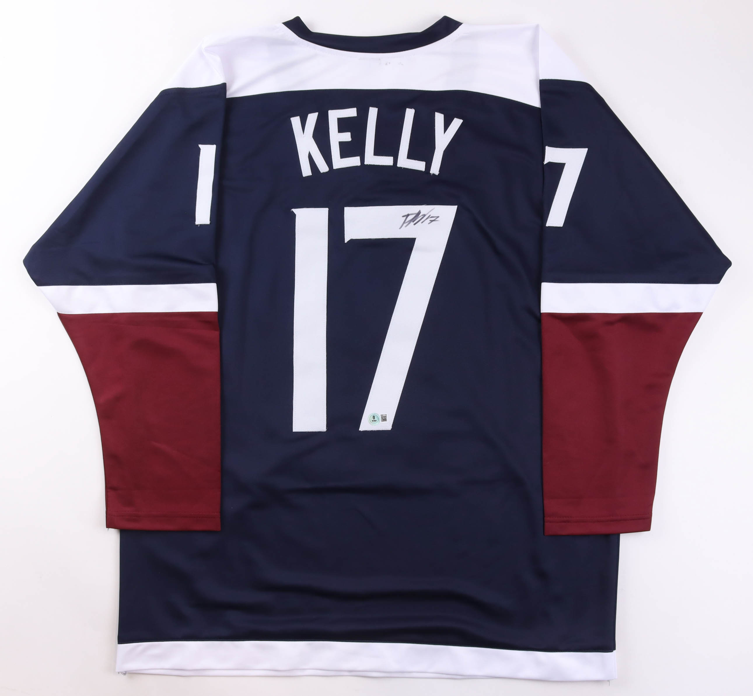 Custom jersey with everything sewn on, size XL. Hand-signed by Parker Kelly (Colorado Avalanche).