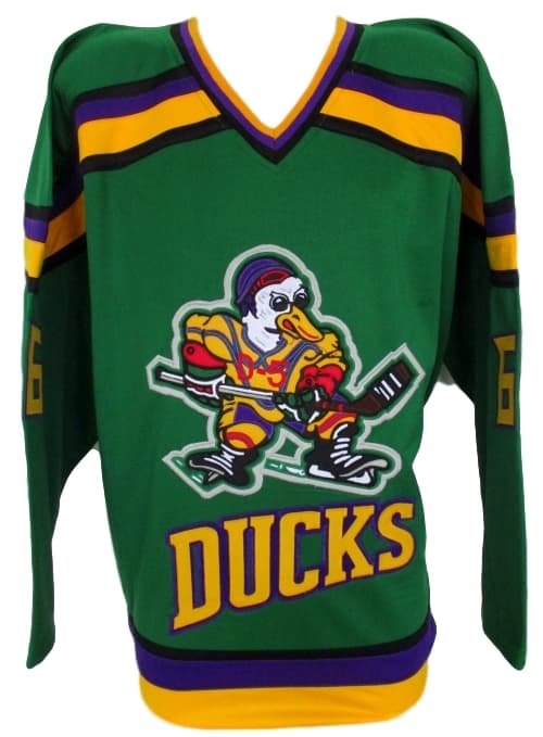 Custom on-ice style jersey. Everything is sewn on. Hand-signed in black felt-tip pen by Emilio Estevez.