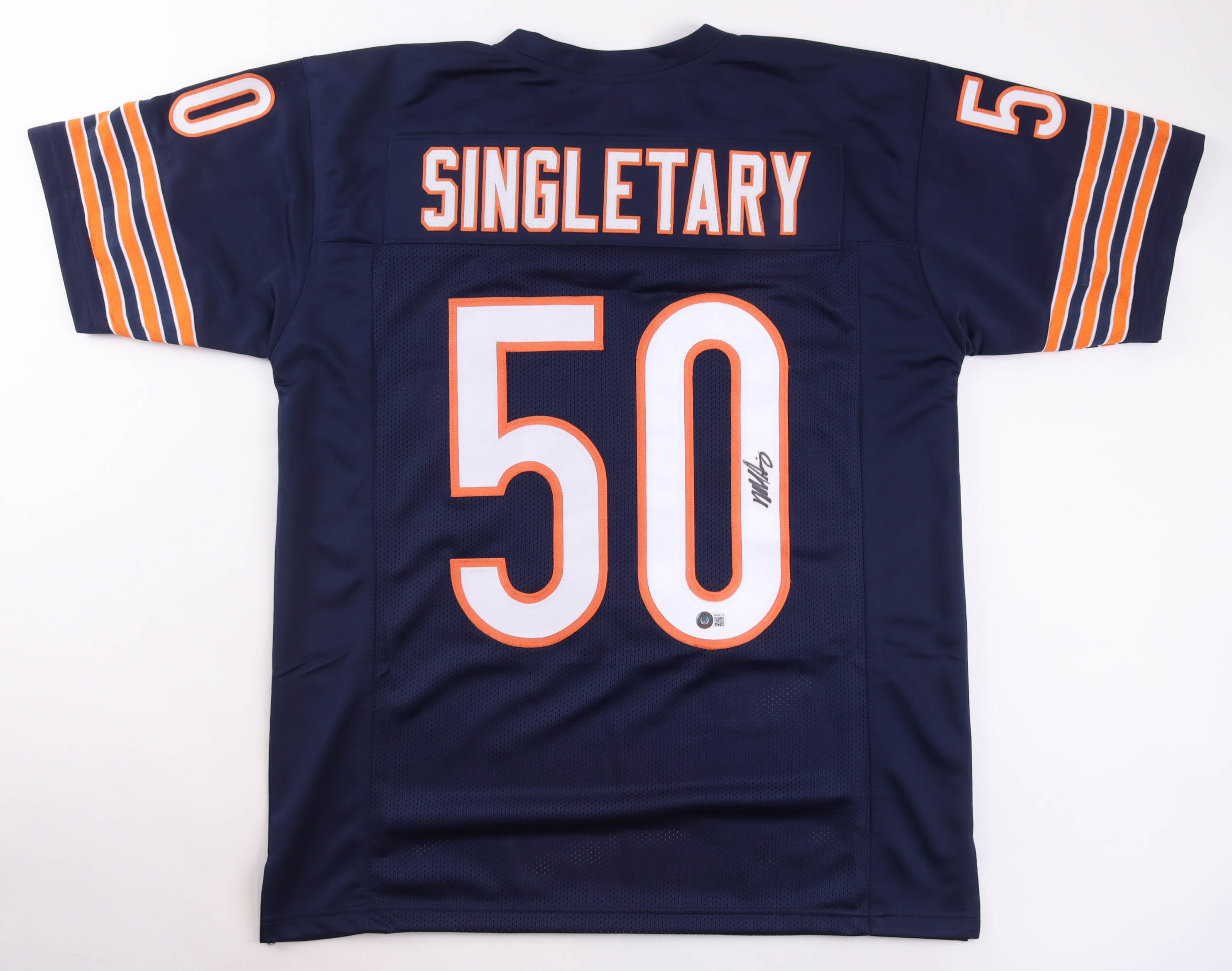 Custom jersey with everything sewn on, size XL. Hand-signed by Mike Singletary (HOF).