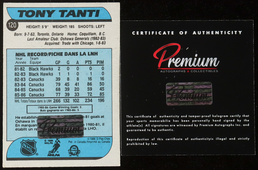 Tony Tanti Signed 1986-87 O-Pee-Chee #120 (Premium)