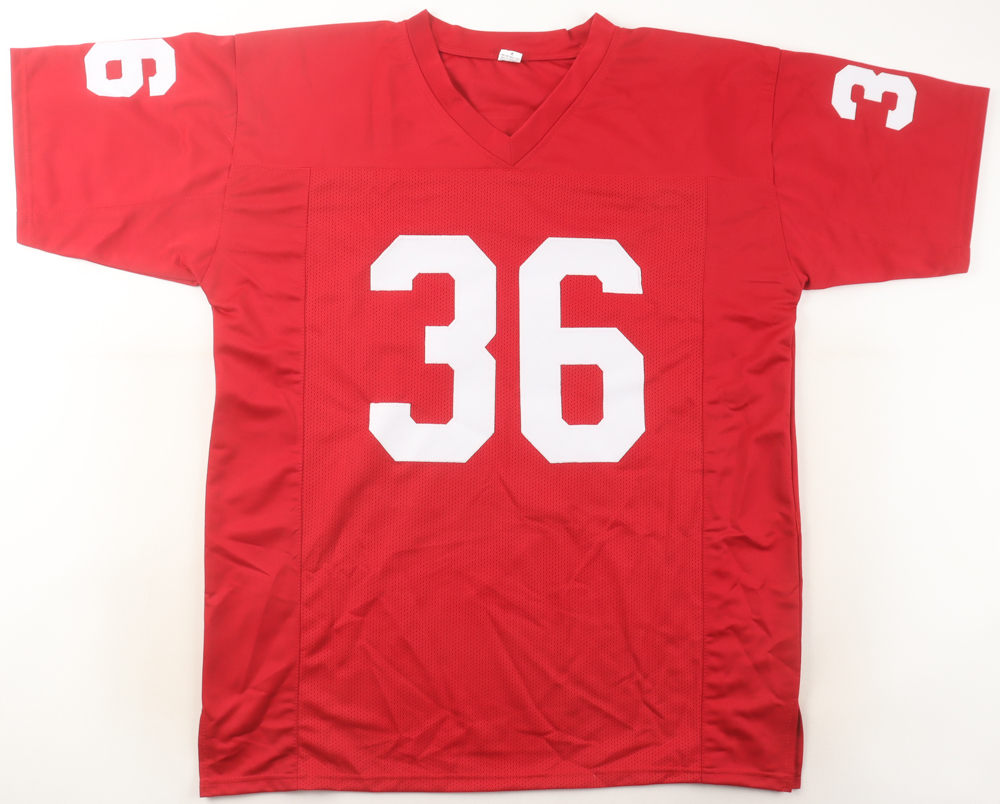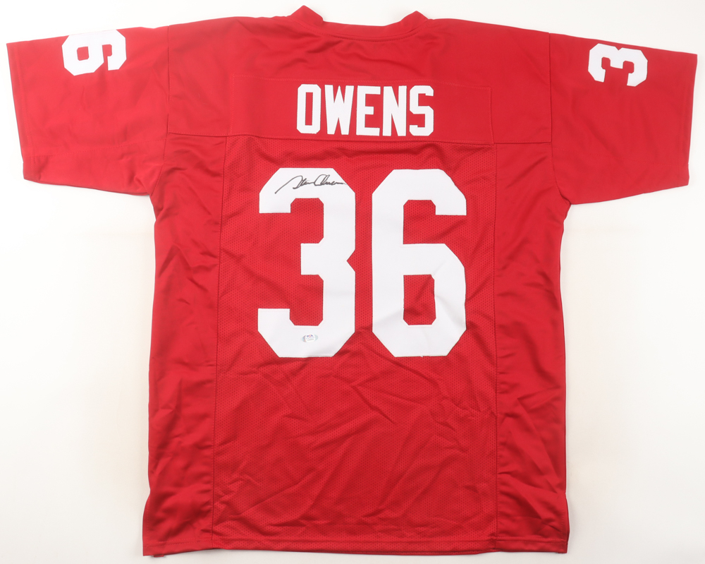 Custom jersey. Everything is sewn on, size XL. Hand-signed by Steve Owens.