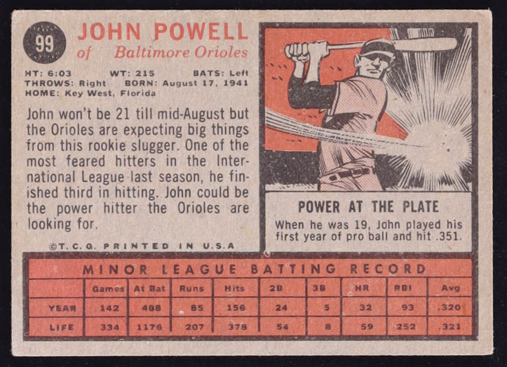 John Boog Powell 1962 Topps #99 RC
