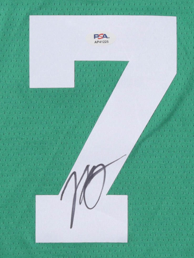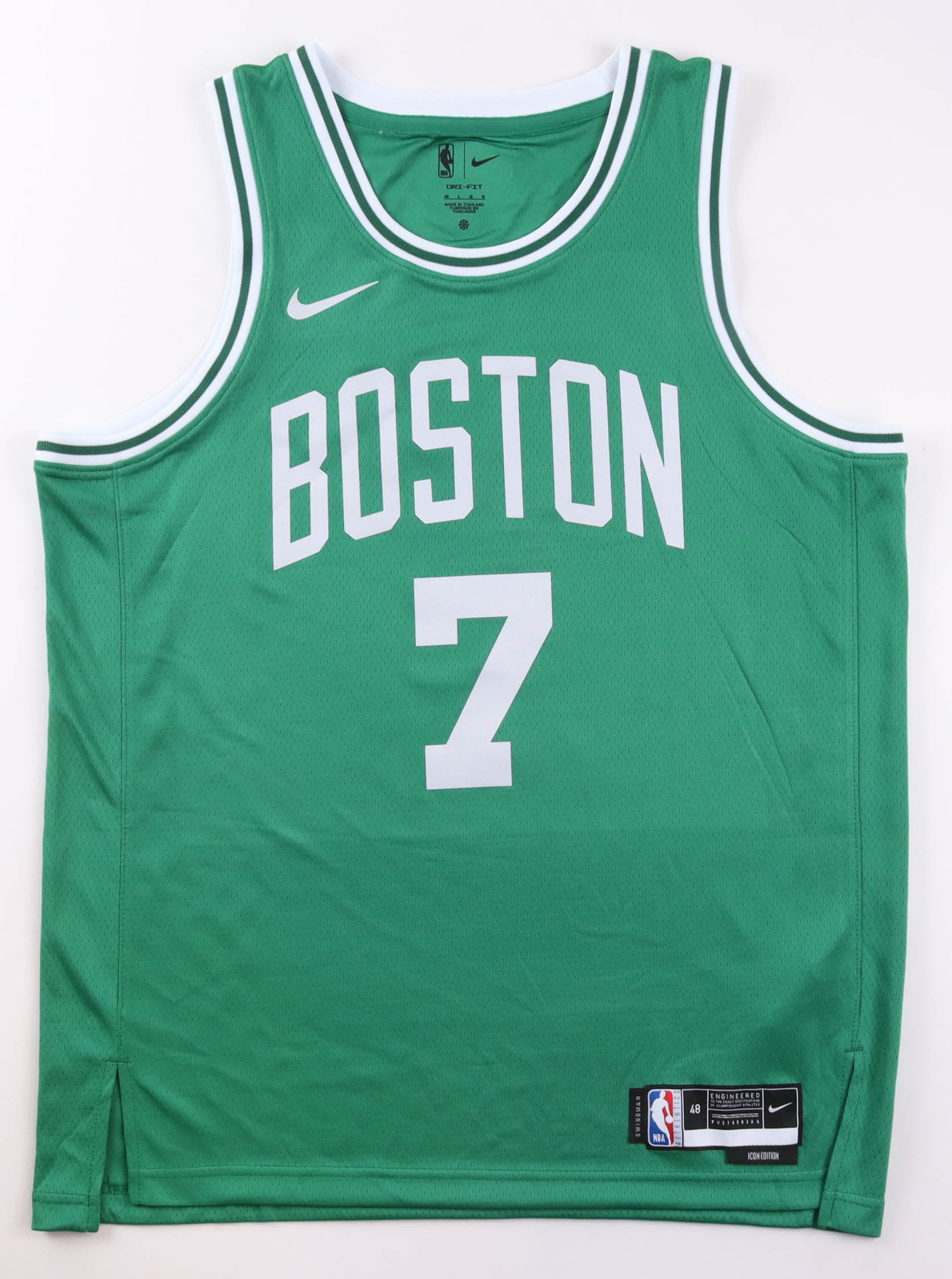 Nike jersey. Everything pressed on, size 48. Hand-signed by Jaylen Brown.
