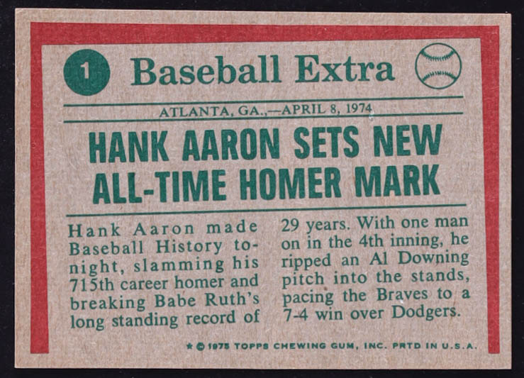 Hank Aaron 1975 Topps #1 HL / Sets Homer Mark