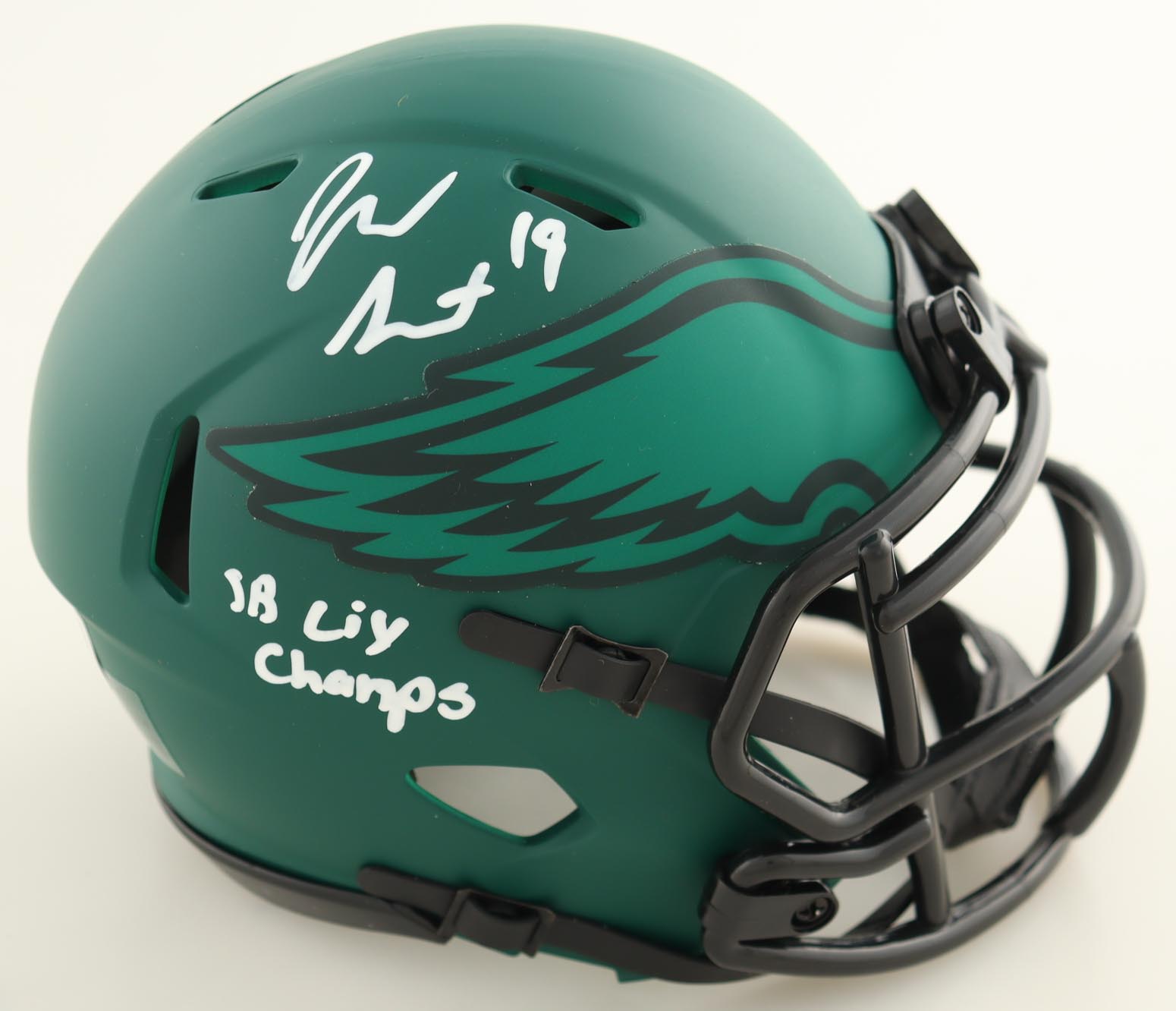 Riddell Philadelphia Eagles Rave Alternate Speed Mini Helmet. Hand-signed and inscribed by Josh Sweat.
