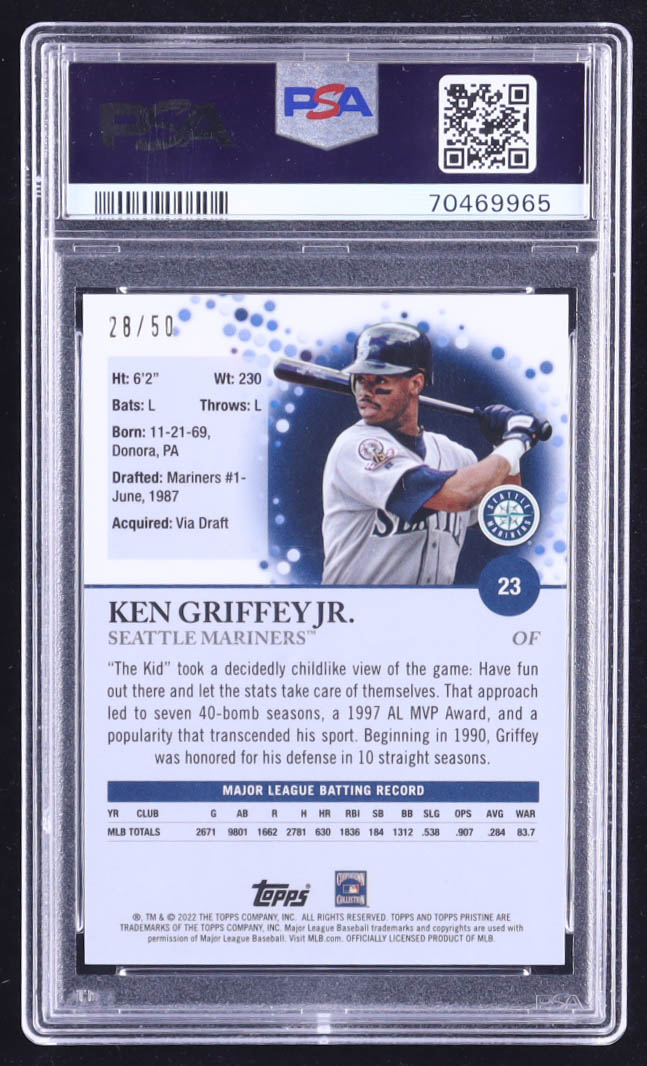 Ken Griffey Jr. 2022 Topps Pristine Gold Refractors #23 #28/50 (PSA 10)