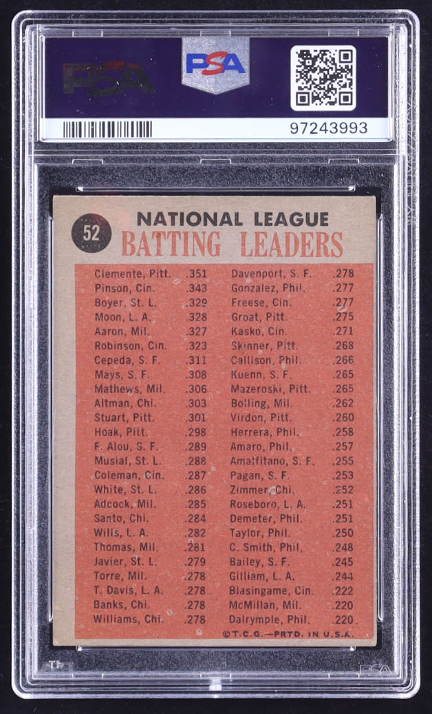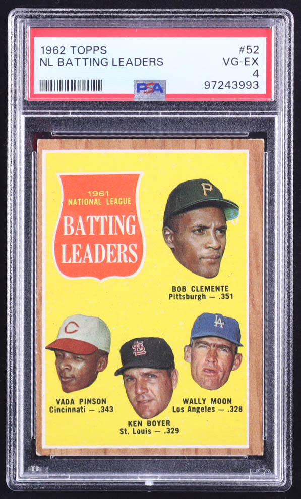 1962 Topps #52 NL Batting Leaders Roberto Clemente / Vada Pinson / Ken Boyer / Wally Moon (PSA 4)