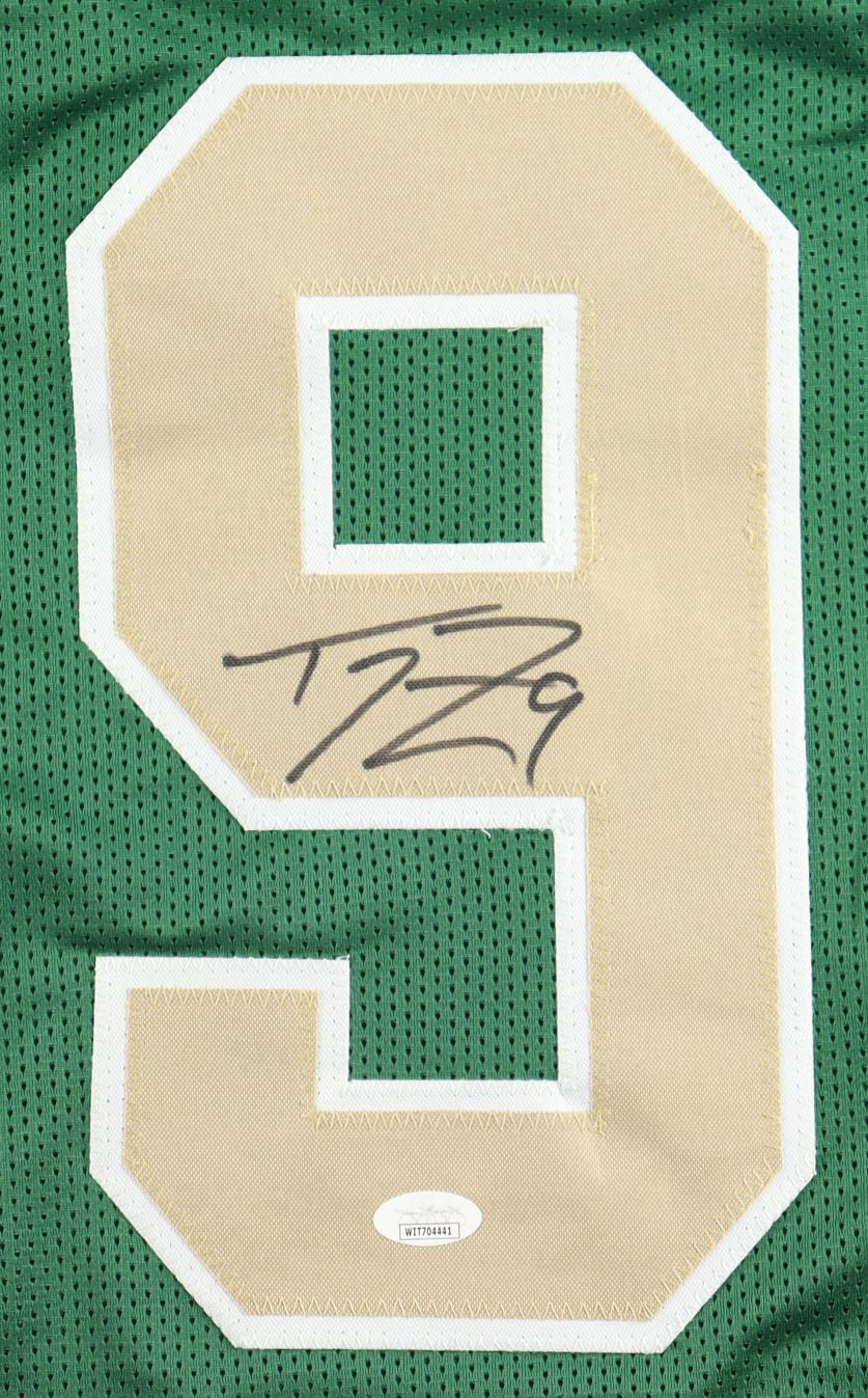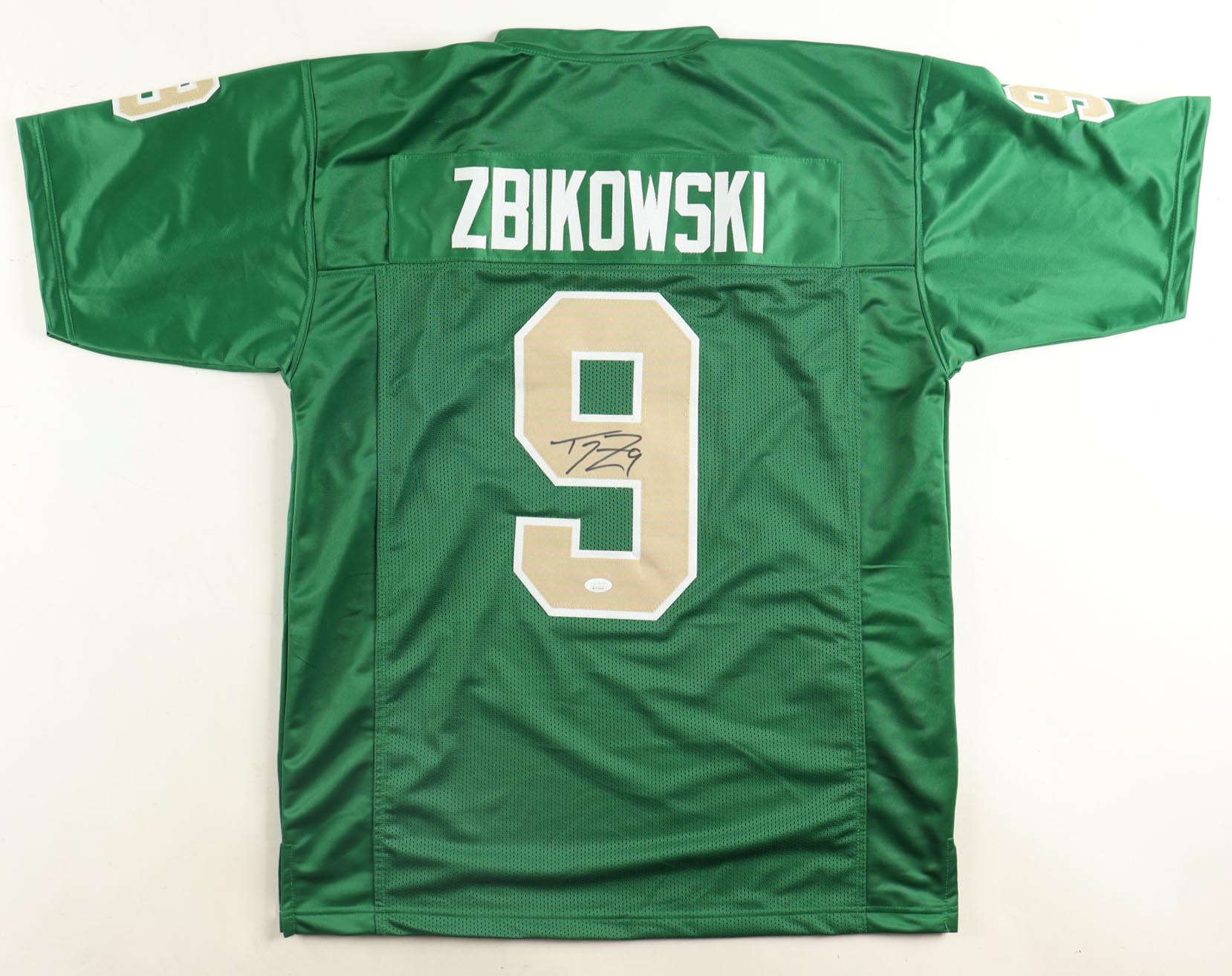 Custom jersey with everything sewn on, size XL. Hand-signed by Tom Zbikowski.
